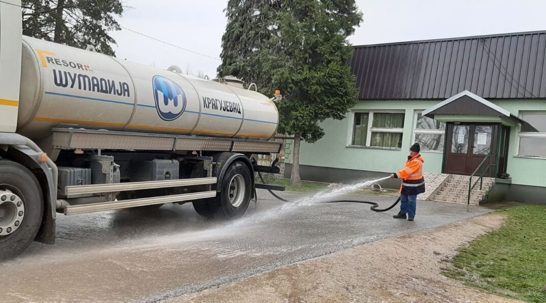 Радници ЈКП „Комуналац“ завршавају дезинфекцију улица и јавних површина  у Барама и Топоници. Након тога прелазе у Губеревац.